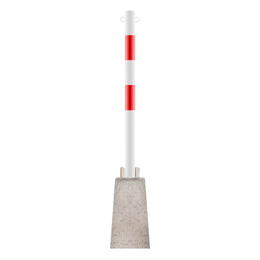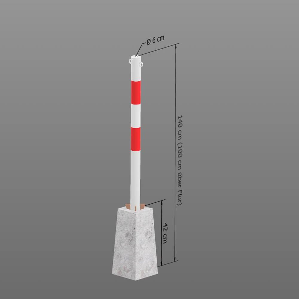 Sparen Sie gleich doppelt! Sie erhalten hier nicht nur den stabilen, 1,40 m großen ROBUSTO Absperrpfosten zusammen mit einem Betonformstein und Holzkeilen zum günstigen Komplettpreis – bei dieser Kombination sparen Sie auch noch viel Zeit beim Aufbau! Der Pfosten wird in den Formstein gesteckt und sorgt an jedem Einsatzort für sichere Begrenzungen!