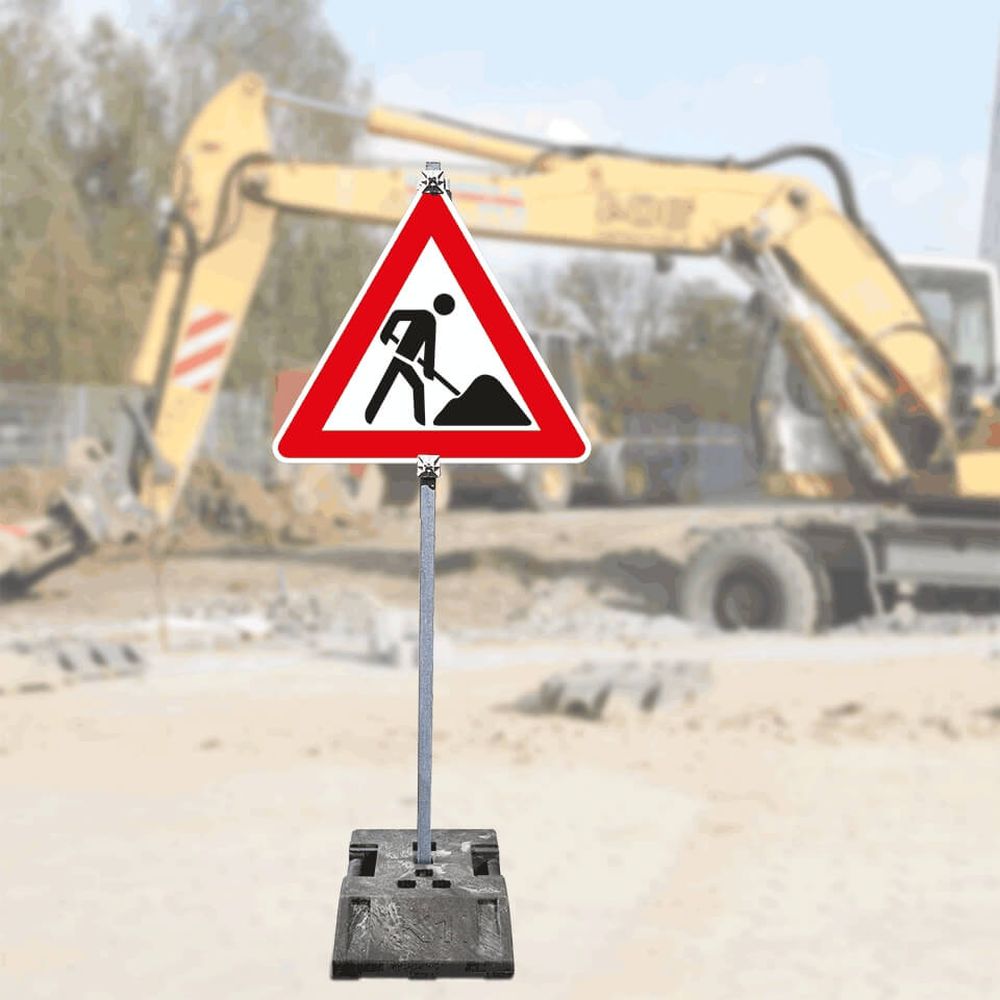 Mit diesem praktischen Set im Doppelpack sichern Sie Ihre Baustelle beidseitig optimal ab. Jedes Set enthält ein retroreflektierendes Warnschild ‚Achtung Baustelle‘ (Verkehrszeichen Nr. 123), ein 3 m langes Vierkantrohr sowie eine besonders stabile Fußplatte, ideal für temporäre Absperrungen auf Baustellen oder Verkehrswegen.