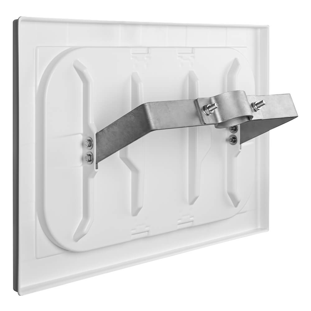 - Mit vormontierter Rohrschelle zur Montage an Ø 7,6 cm Rohrpfosten oder Wandarmen