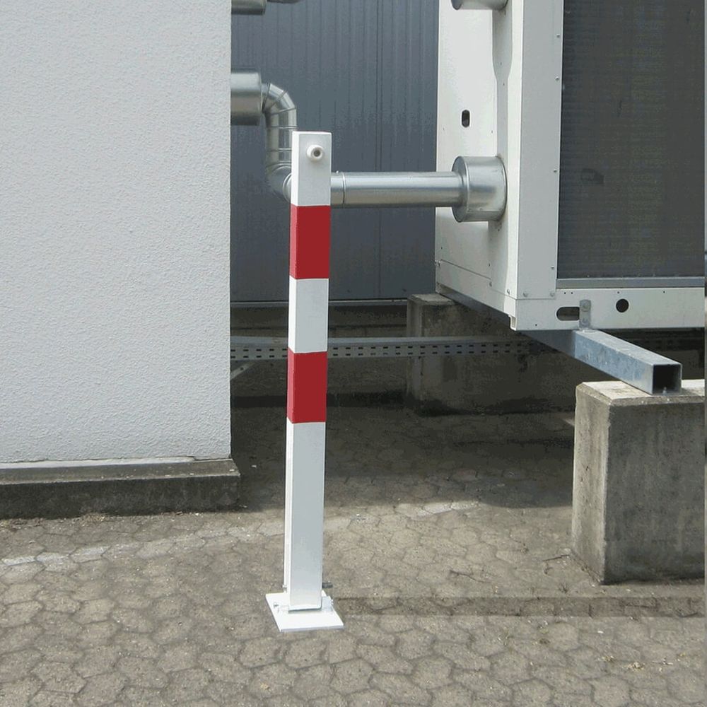 Der rot/weiße ROBUSTO Sperr-Pfosten zum Umklappen sichert effektiv Parkplätze, Zufahrten, Wege und vieles mehr. Über die integrierte Bodenhülse wird der Kipp-Pfosten an der gewünschten Stelle 40 cm einbetoniert und misst so über Flur unübersehbare 100 cm. Im umgeklappten Zustand misst der Pfosten nur noch eine Höhe von 9 cm und ist so problemlos überfahrbar. Über den mitgelieferten U-Sperrbügel wird der Absperrpfosten gesichert, ein Vorhängeschloss (z. B. unser ABUS-Schloss, Artikel 37780) kann als zusätzlicher Schutz am Sperrbügel angebracht werden, damit dieser nicht von unbefugten Personen umgeklappt wird. Der Pfosten mit einem Grundmaß von 7 x 7 cm ist durch ein Scharnier mit der 15 x 10 cm großen Fußplatte verbunden, welche fest mit einer 40 cm langen Bodenhülse verschweißt ist. Die retroreflektierenden Folienstreifen machen ihn auch nachts gut sichtbar.