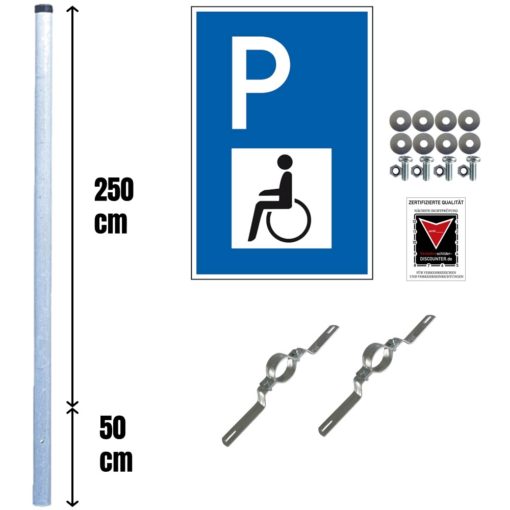 Komplett-Set Parken nur für Behinderte, 3 m Einbetonier-Pfosten und Befestigung