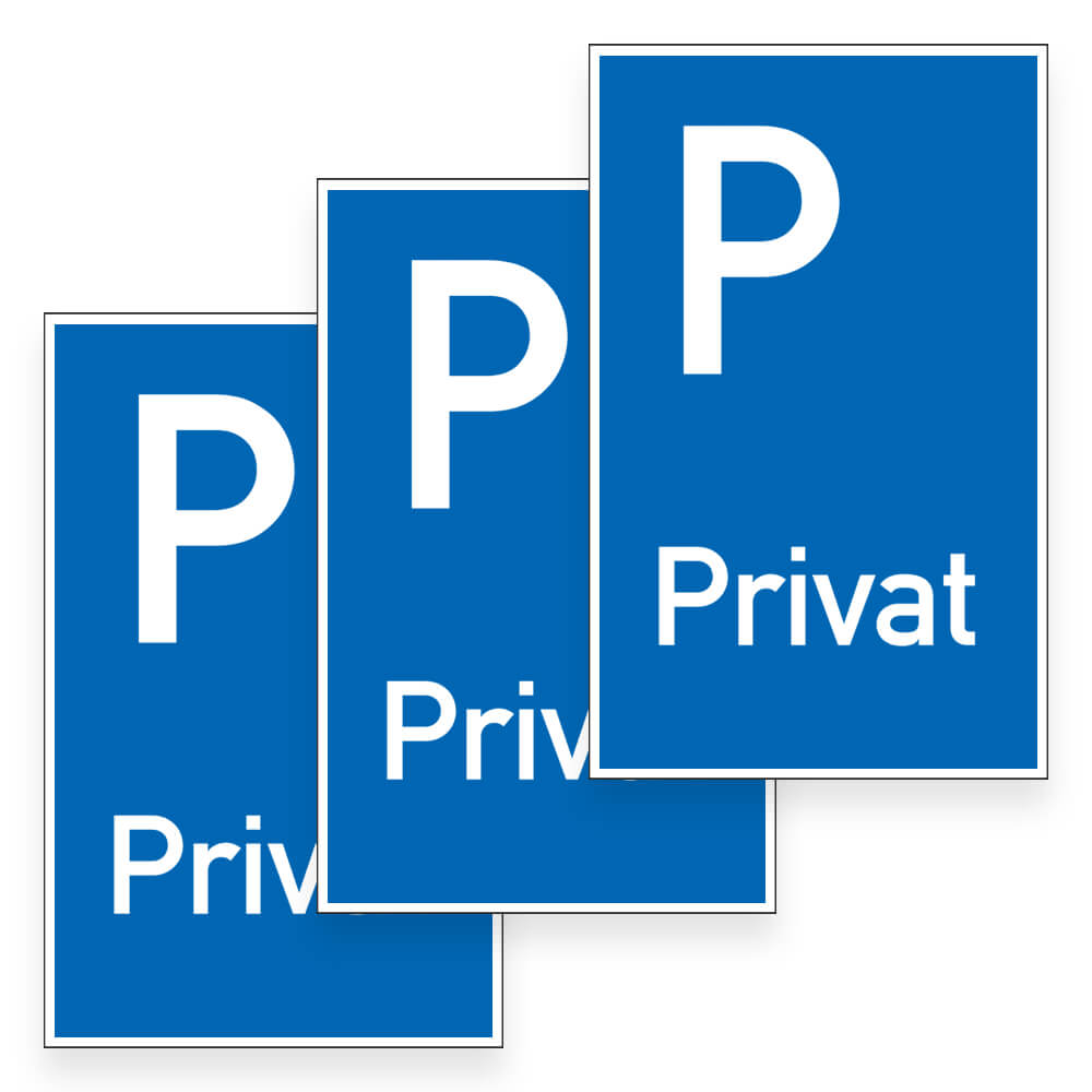 - Signalstarke Farbe mit dem typischen ‚P‘ für Parkplätze und der Aufschrift ‚Privat‘