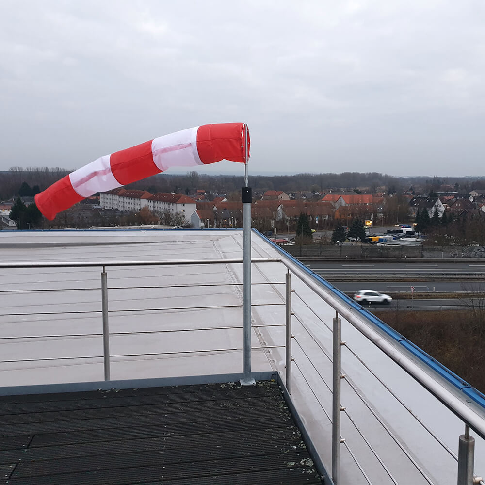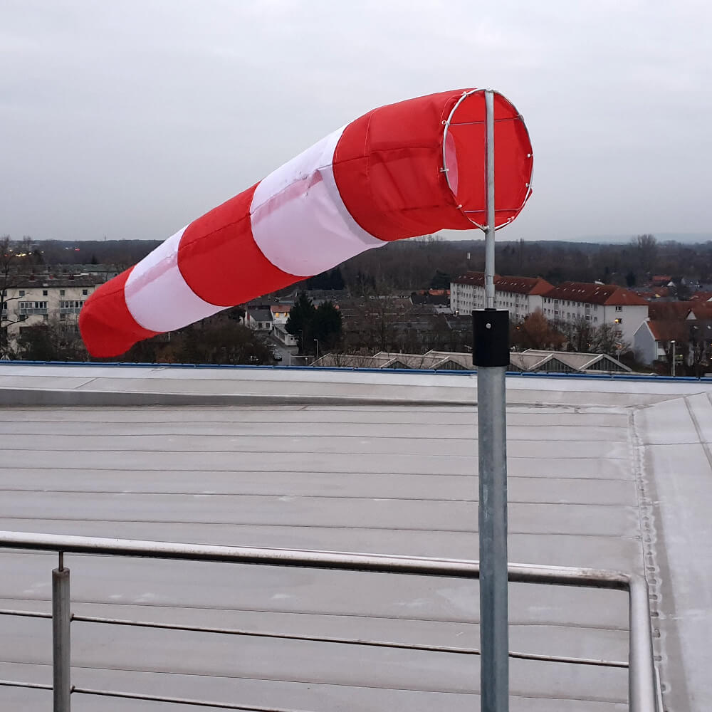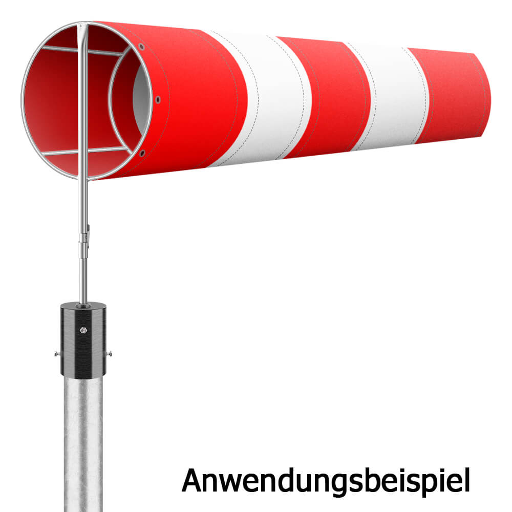 Das Windsack-Komplett-Set zum Aufdübeln, bestehend aus rot/weißer Windsackhülle (Ø 30 x 180 cm), Windsackkorb, Mastadapter und Rohrpfosten (Ø 6 cm x 3 m), dient der Anzeige von Windrichtung und Windstärke auf Flugplätzen, Industrieanlagen und mehr. Ein Stahlkugellager sorgt für eine leichtgängige Rotation auch bei niedrigen Windgeschwindigkeiten.